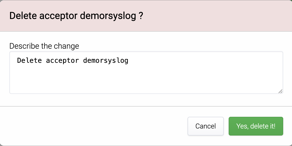 Opět se vám otevře potvrzující dialog nebo tlačítko Cancel pro zrušení úmyslu smazat akceptor.