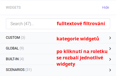 - SCENARIOS - widgety nabízející přehled o dění v jednotlivých scénářích.