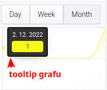 Trend je vyjádřen také grafem. Lze u něj volit granularitu intervalu den, týden, měsíc: DAY, WEEK, MONTH. Vybraný interval je označený světle šedou barvou.