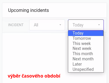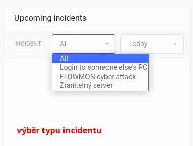 Pod první roletkou můžete vyfiltrovat typ incidentu, který chcete ve widgetu sledovat.