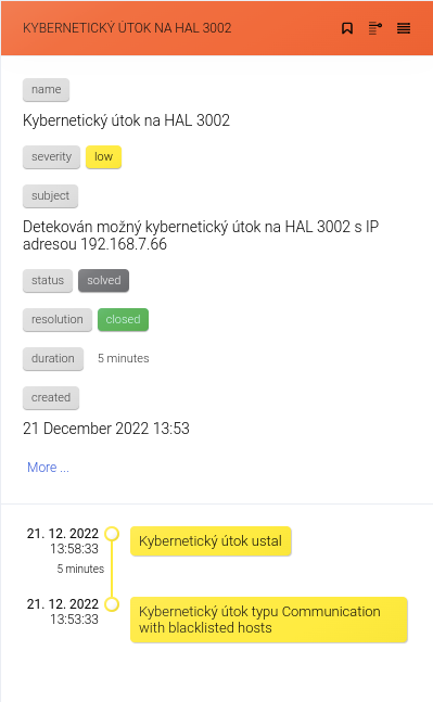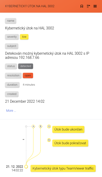 Pokud kliknete na vybraný incident v seznamu, budete přesměrováni k jeho zobrazení v síti reality pod záložkou NETWORK. V pravém panelu se pak nachází o incidentu detailnější informace.