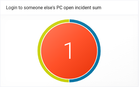 Widget Login to someone else's PC open incident sum znázorňuje otevřené incidenty s návazností na typy aktiv prostřednictvím kruhu a jeho okolí. Je podobný jako globální widget Open incident sum. Zahrnuje však pouze incidenty typu Login to someone else's PC.