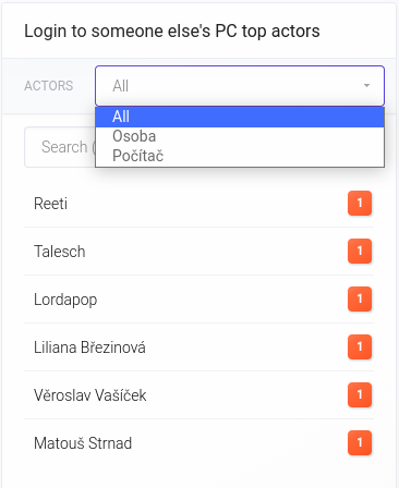 Widget obsahuje i fulltextové vyhledávání, které je výhodné, pokud hledáte konkrétního aktéra.