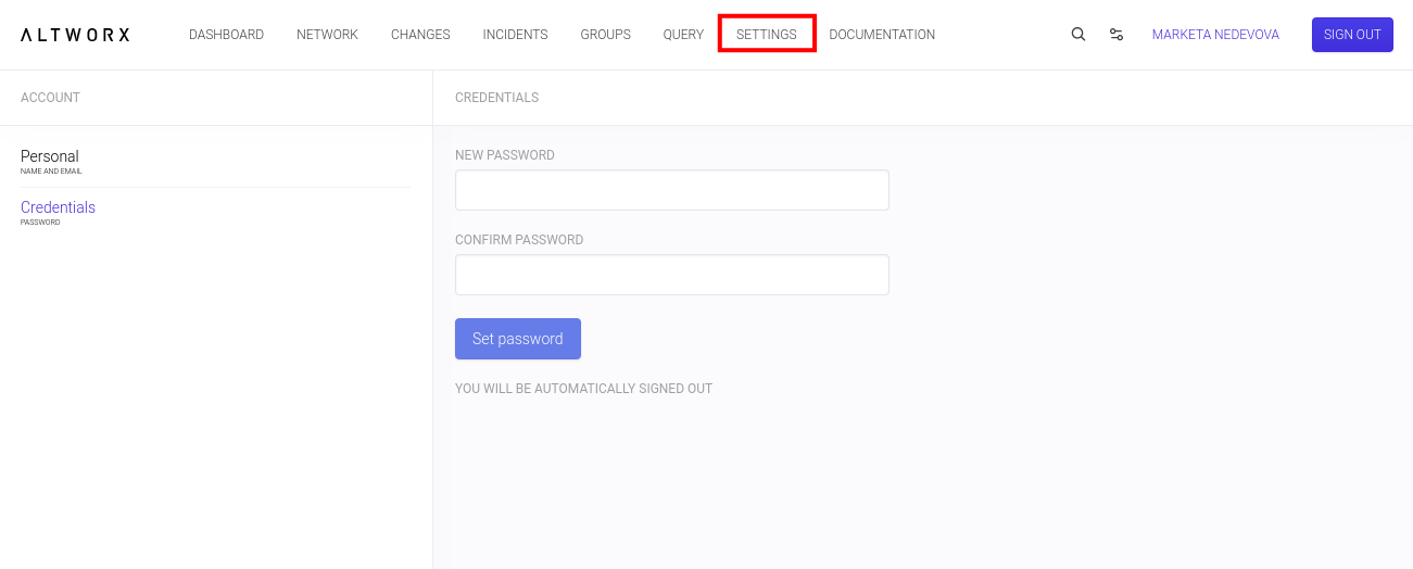 Druhou sekcí je CREDENTIALS. Ta umožňuje změnit heslo, pokud se rozmyslíte, že z bezpečnostních nebo jiných důvodů chcete heslo jiné.
