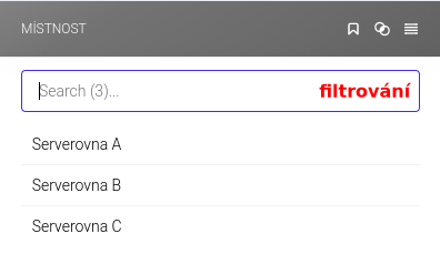 Při procházení sítí reality vyberete bublinu, kterou chcete přidat do konkrétní skupiny. Při kliknutí na bublinu se vám otevře pravý panel, ve kterém je vypsaný seznam aktiv zahrnutých ve skupině. Filtrování vám může pomoci při výběru více aktiv podobného názvu. Funguje na způsob fulltextového vyhledávání. S každým znakem omezuje množinu aktiv, které můžete do skupiny přidat. Množinu odpovídající zadanému výrazu přidáte k vybrané skupině přes ikonu .