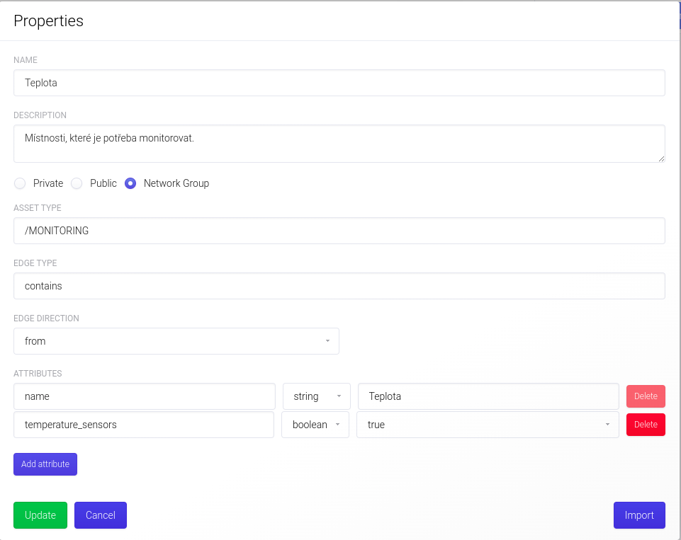 Pokud byl při vytváření skupiny vybrán typ Network Group, projeví se tato skupina v síti reality jako nové aktivum.
