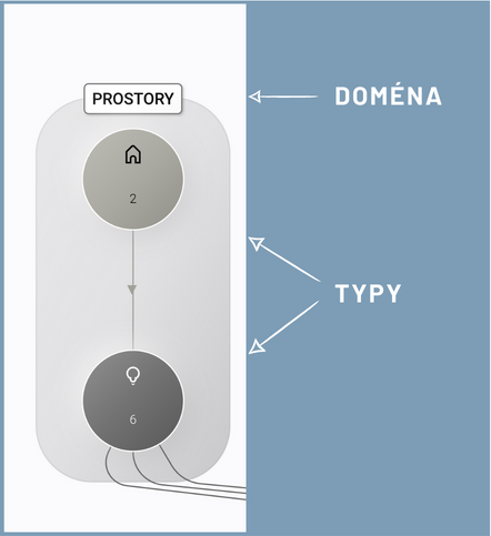 Domény v sobě zahrnují kategorie aktiv, tzv. typy, vyobrazené bublinami. Přiřazení typů k doménám je možné provést pod záložkou SETTINGS, v sekci Types.