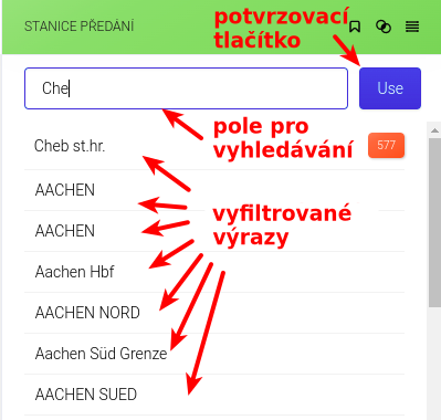 Jakmile napíšete nebo vyberete vámi požadovaný výraz, potvrďte jeho zadání tlačítkem “Use”.