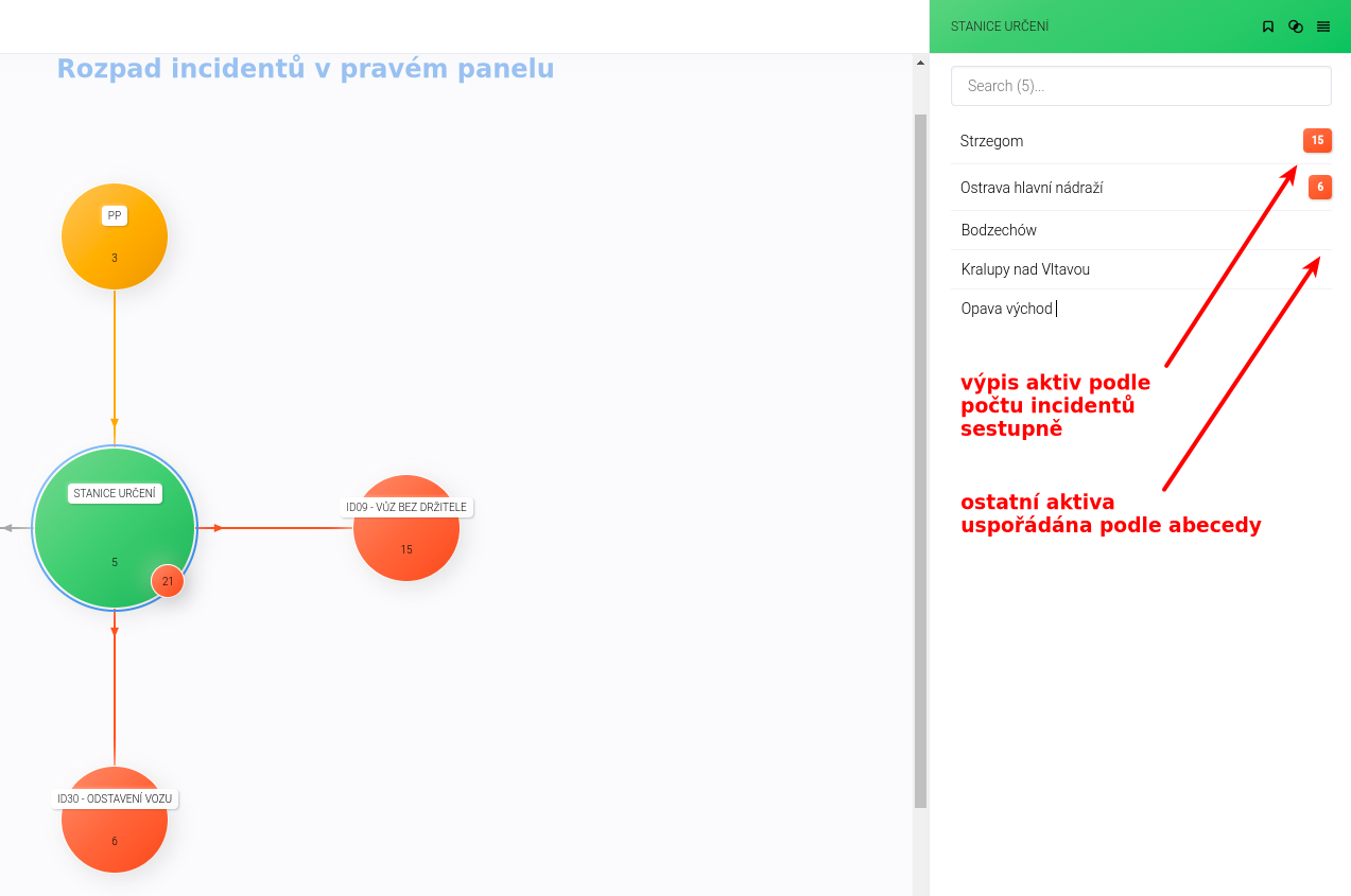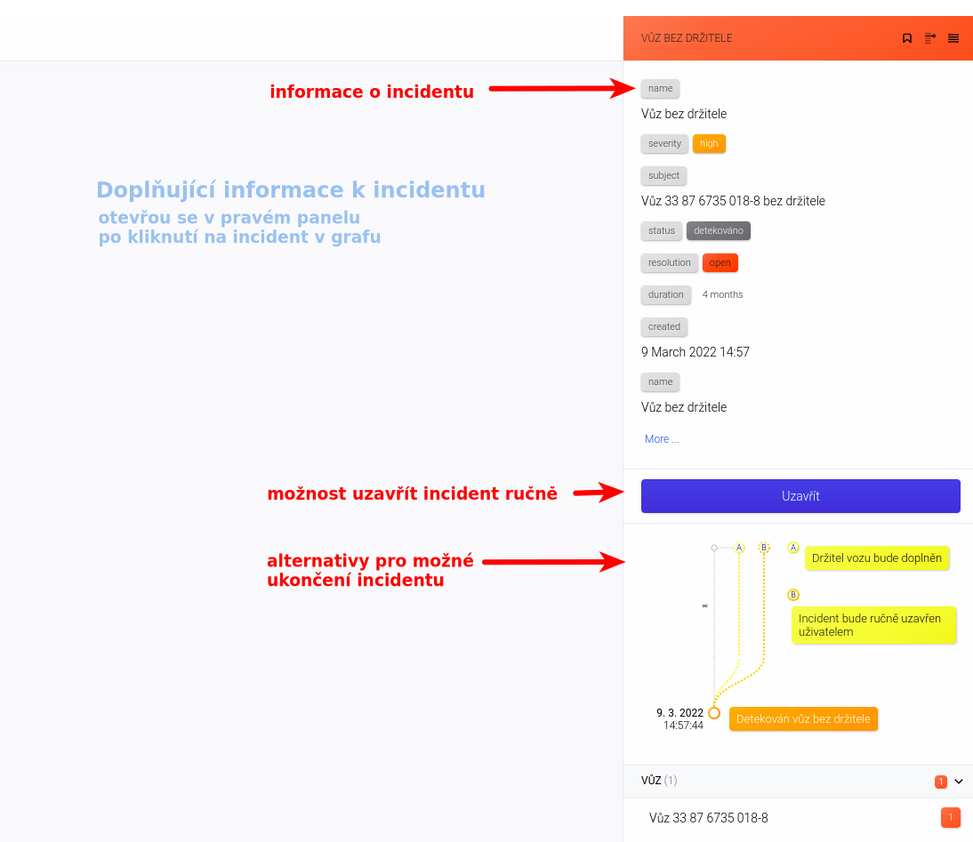 Po kliknutí na incident se zobrazí v pravém panelu specifické informace.